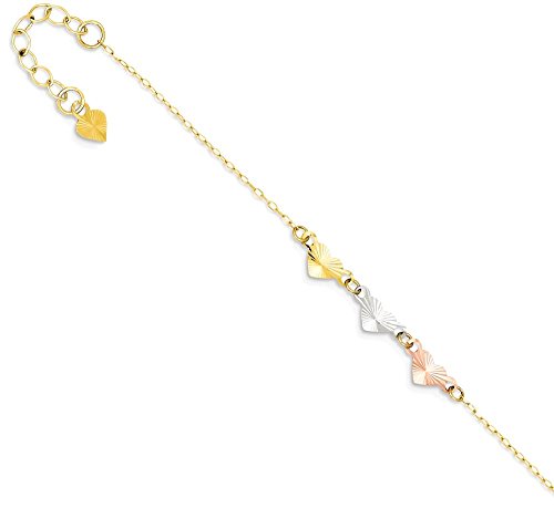 -. Title : ICE CARATS 14k Tri Color Yellow White Gold Adjustable Chain Plus Size Extender Heart Anklet Ankle Beach Bracelet Fine Jewelry Gift For Women Heart