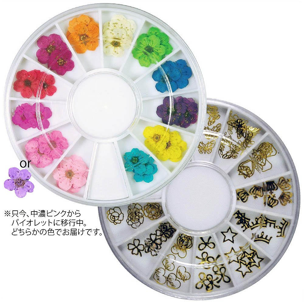 Pressed Flower & thin metal popular parts deco nail round case input 2 pcs / set