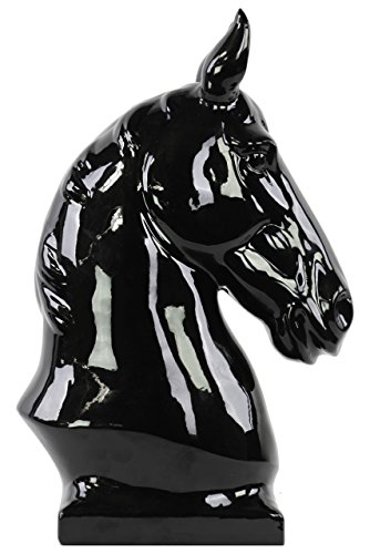 Urban Trends Ceramic Horse Bust on a Platform, Gloss Black