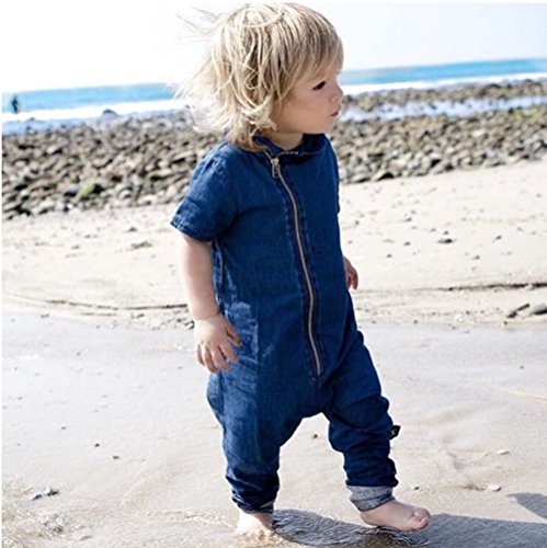 -. Feature : Material:Cotton blend / Suitable for:6-24 months baby boy / Design,So Fashion, Cool,Great Gift To Baby, / Fit for Casual,Photograph, Party, Daily and Any Occasion in SP.R.Ing, Summer Autumn / Package include:1*Toddler Boy Girl Short Sleeve Zipper Denim Romper Jumpsuit