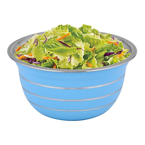 Kosma Premium Stainless Steel Deep Mixing Bowl | Salad Bowl in brilliant Sky Blue Colour exterior and Mirror Finish Interior - 22 cm ( 3 Litres)