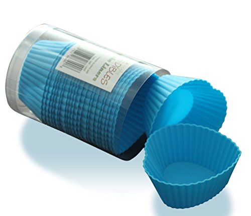 Heart Cupcake liners silicone by CiE Set of 24 Blue muffin cups. (3 Inch/3oz)