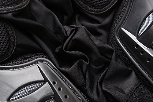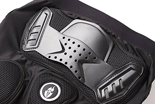 -. Feature : Full body under jersey coverage, Velcro adjustment arround the abdomen / Anatomic high impact 2 pieces of plastic chest plate / High impact plastic shoulder & elbow coverage, Durable and stretchable EVA, thickness of 1.5CM, super strong buffer effect. / PE rubber shell with multiple large vents, great ventilation and shock-resistant; Elastic mesh fabric, breathable and comfortable / Perfect for motorcycle, bike riding, skiing and skating, and other entertainment conservation projects.