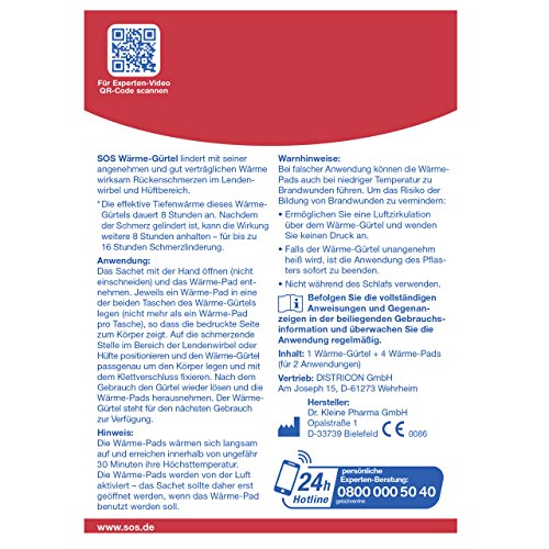 -. Feature : entspannt verkrampfte Muskeln und löst Verspannungn / therapeutische, gleichmäßige Tiefenwärme / elastischer Textilgürtel Größe S - XL mit Wärmepads / 8 Stunden effektive Wärme / pro Gürtel 2 Anwendungen möglich
