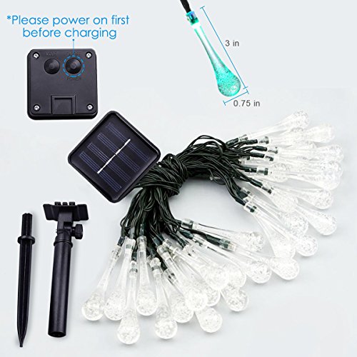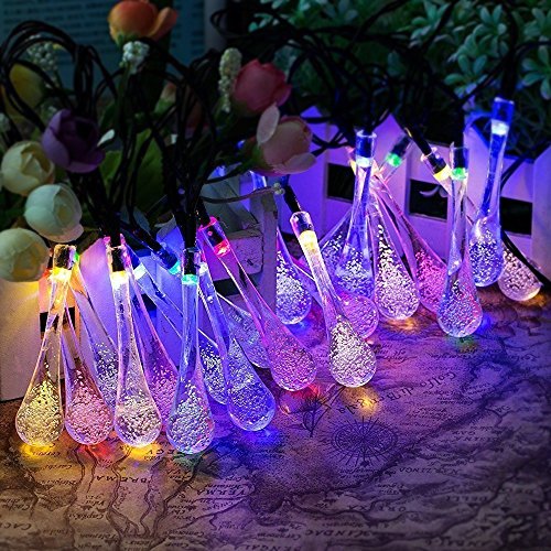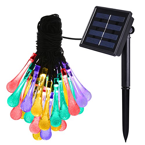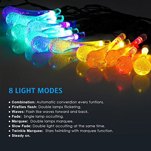 AMIR Solar Powered String Lights 8 Modes 30 LEDs,Colorful Water Drop String Lights, Raindrop Fairy Lights, Starry Lights, Waterproof Solar Decoration Lights for Gardens, Home, Party (Multi Color)