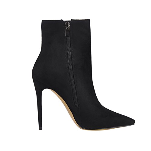 Binding : Apparel Product Description Material: Vegan synthetic leather, anti-skid ruber sole Heel Height: 12cm / 4.75in Style: Pointed toe high heels / Ankle booties with size zipper / Black ankle boots / Women dress shoe / Comfortable shoes for women / Black heels Dressing Tips: Pairing these ankle boot with jeans, leggings, dress or coat will all make you look elegant and charming. 0