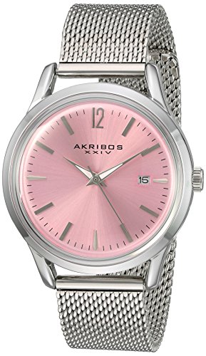 -. Title : Akribos XXIV Women's Quartz Stainless Steel Automatic Watch, Color:Silver-Toned (Model: AK930PK)