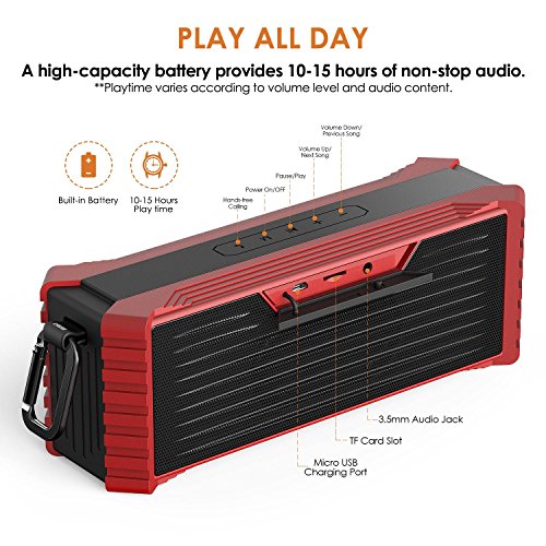 - DURABLE, RUGGED TOUGH, PORTABLE DESIGN: Featuring with a smooth but durable rubber exterior protects the speaker from unexpected scratches and impact. The included carabiner makes it possible to attach the portable wireless speaker to your backpack. Just take the Olictar portable speaker with your friends, family, lovers to enjoy the pleasing, exciting and freely journey!