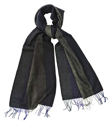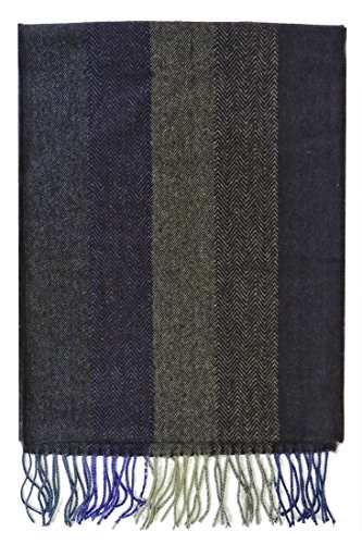 Product Description A soft, 100% cashmere scarf patterned with subtle, wide vertical herringbone stripes in teal, grey and blue. Over 5 feet long. Made in Germany. 0