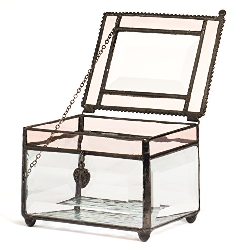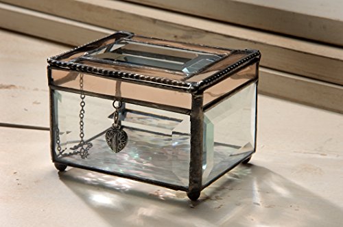 J Devlin Box 583 Beveled Glass Jewelry Box Translucent Pink Champagne Trim Heart Charm Romantic Keepsake Gift