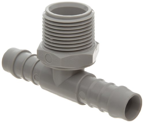 Tefen Nylon 66 Hose Fitting, Tee Adapter, Gray, 1/2" Hose ID x 1/4" NPT Male x 1/2" Hose ID (Pack of 10)