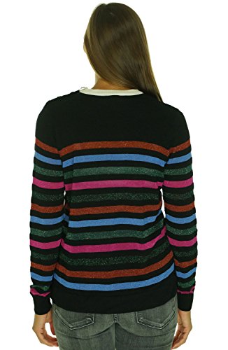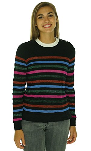 Product DescriptionThis multi-colored striped sweater features a 3-button detail along the collar0