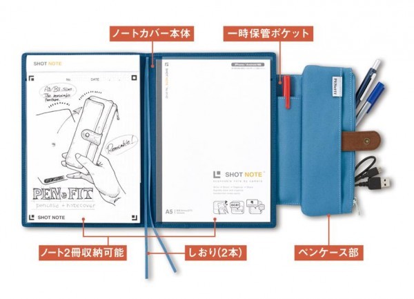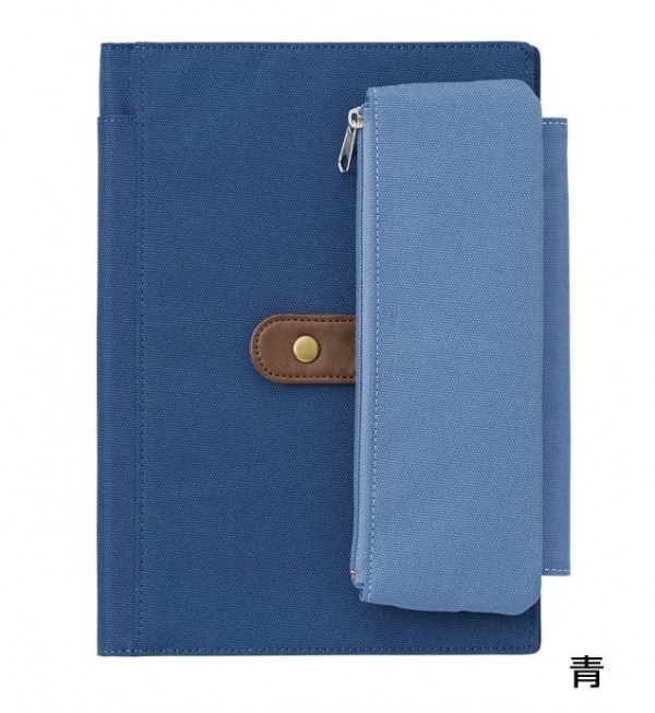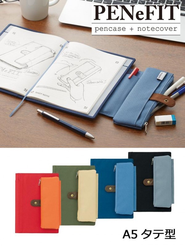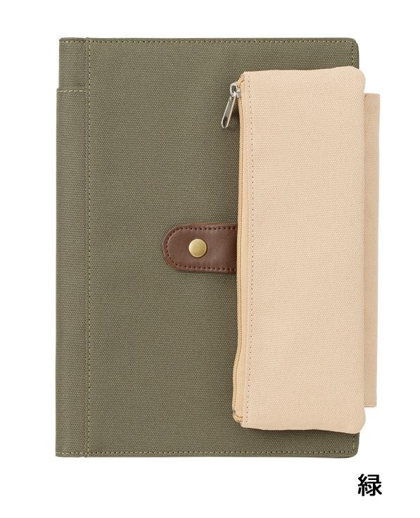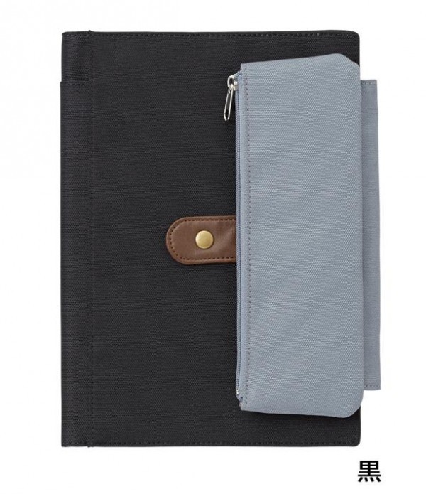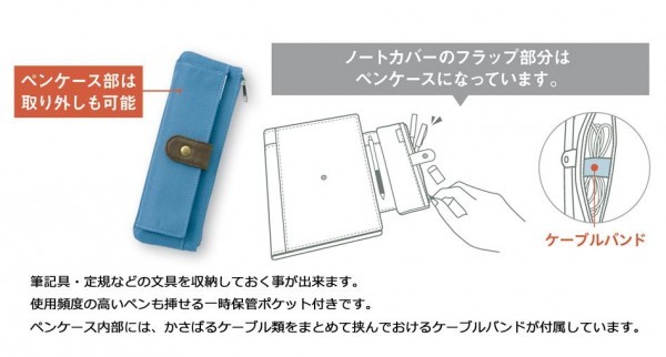 | 取り外しもできるペンケース付のノートカバー。 |