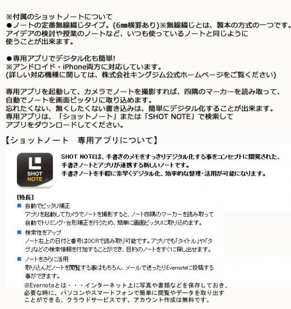 | 付属品 | ショットノート(無線綴じタイプ)No.9142・白(30シート)×1冊 |