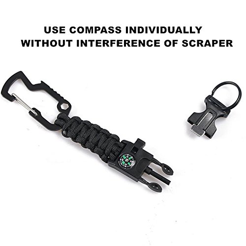 - Parsoutdoor keychain is a complete paracord survival keychain that includes: High-Quality Compass. Flint Fire Starter.Bottle Opener, Fire Scrapper. Emergency Whistle creates noise levels of up to 100db.