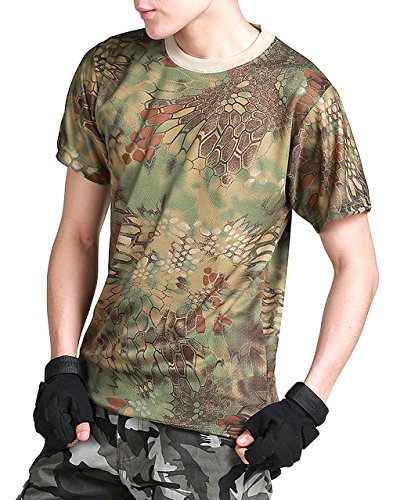 원본상품명: (ガンフリ?ク) GUN FREAK 迷彩柄 半袖 Tシャツ タクティカル ストレッチ メッシュ サバゲ? ( マンドレイク グリ?ン , XL )