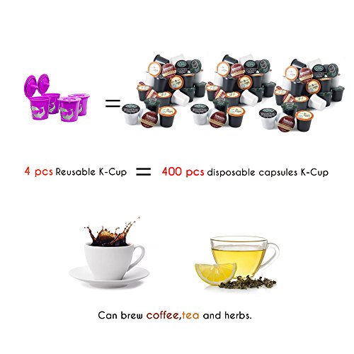 BRBHOM 4 Refillable K Cups Coffee Pods Capsules Reusable Coffee Filters For Keurig 2.0, K200, K250, K300, K350, K400, K450, K460, K500, K550, K560 and 1.0 Brewers