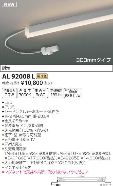 ●別売専用電源〔AE48168E \27,800(税抜)、AE48167E \22,800(税抜)、AE48166E \17,800(税抜)、AE49265E \14,800(税抜)〕