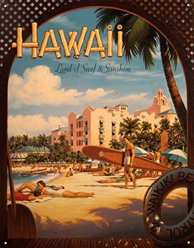 Tin Sign Title: Travel Poster Tin Metal Sign : Hawaii Land of Surf & Sunshine