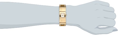 -. Feature : Gold-tone watch featuring white dial with gold-tone hands / Quartz movement with display / Mineral crystal dial window / Features cuff bracelet with square cutouts, logo engraving, and jewelry-clasp closure / Water resistant to 30 m (99 ft): withstands rain and splashes of water, but not showering or submersion