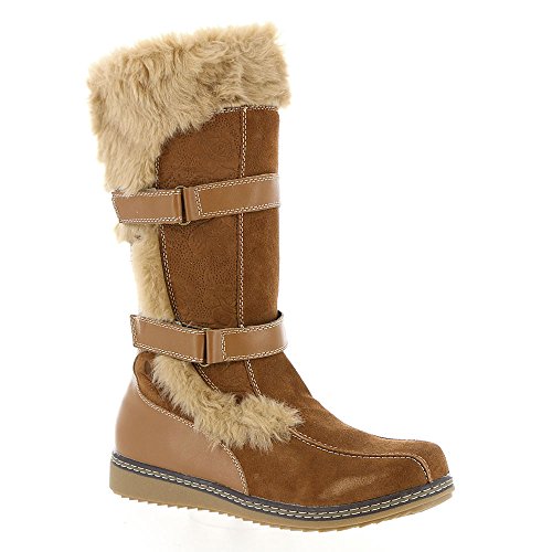 Studio : Spring Step Publisher : Spring Step Binding : Apparel Product Description Ultimate comfort with every step. Designed with the quality and craftsmanship of true European tradition. Spring Step combines comfort, technology and fashion to bring you everything that is important in a shoe. Chacana, water resistant, leather belted boot with floral embossing and faux fur trim detail features round toe, high quality suede upper, antique finished metal hardware, adjustable straps, inside zipper closure, soft textile lining, soft textile comfort padded insole, TPR outsole. Heel height (approximately): 1 1/4'. Shaft height (approximately): 12'. Circumference (approximately): 14 1/2'. Material: Suede, Faux Fur, Textile, Rubber. 0