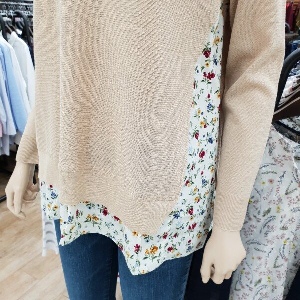 꽃블라우스 배색 라운드니트 단독으로 포인트주기 좋은 아이템
