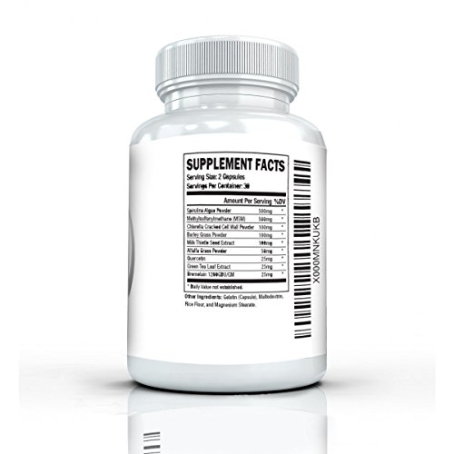Spirulina Superfood Supplement- Premium Green 60 Capsules- Plus Green Tea, MSM, Barley Grass, Milk Thistle, Quercetin, Alfalfa & Bromelain