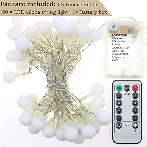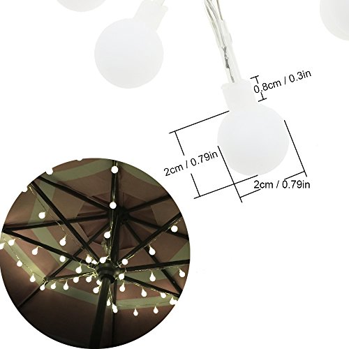 - 【Length of the wire light】:Length of the wire light is 5.3 meters/17.4 feet with 50 LED (Battery pack to first light: 1 ft., Distance between lights: 4 inch, Globe dia: 0.75 Inch)