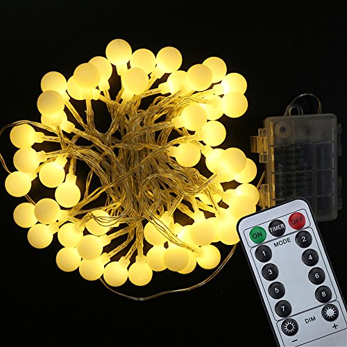 【Remote&Timer】 LED Dimmable Flickering String Lights 8 Modes Battery Operated Globe Ball Indoor and Outdoor Light for Garden Party Wedding,Warm White,IP65 Waterproof (16ft/5m 50 LED)