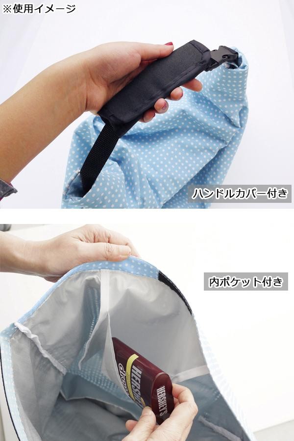 | コットン生地でできたポーチは、内側のシルバーコーティングで薄くても保冷・保温効果があり、ちょっとした時の買い出しや差し入れ時などに便利です。底面内マチタイプ。 |