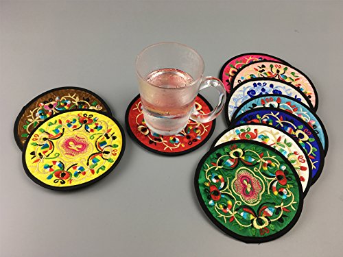 Coasters for Drinks, 5.12" / 13cm Cloth Fabric Coaster in Set of 10 Pieces, Cup Mat Absorbent Coaster