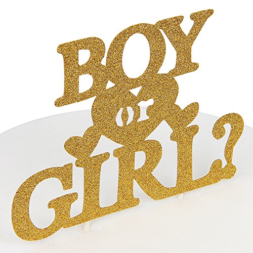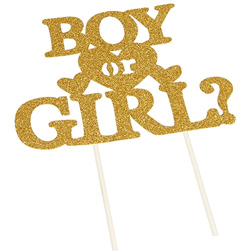 INNORU Boy or Girl Cake Topper - Single Sided Gold Glitter Baby Show Party Photobooth Props