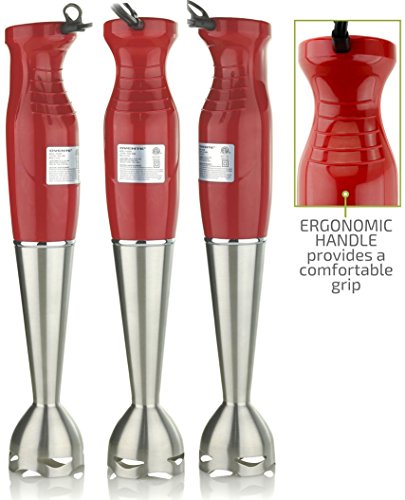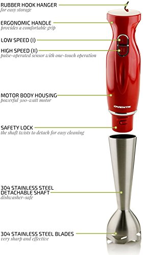 Witness ease, convenience, and versatility at work-right in your own kitchen.Discover a world of innovative cooking possibilities with the Ovente HS580 Handheld Immersion Blender. It makes blending and mixing any soft foods a pleasure because it makes it SO easy and effortless, that's actually fun! Its lightweight body along with its ergonomically-designed, non-slip handle is so comfortable to hold and control that cooking won't ever feel like a chore again. Whip up all of your favorite gourmet soups, guacamole, smoothies/shakes, cake batter, salsas, sauces, marinades, salad dressings, or even homemade baby food for your precious bundle of joy with just one press of a button.