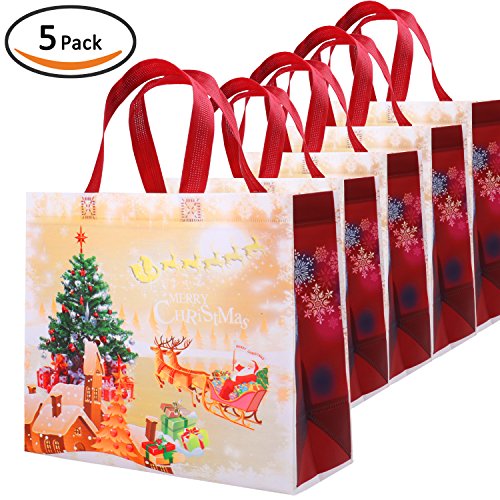 Rumcent Durable Reusable Non-woven Christmas Gift Bag,Shopping Bag Grocery Bags,Pack Of 5 Pcs