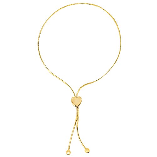 -. Title : Lariat Type With Heart Clasp Bolo Friendship Adjustable Bracelet In 14K Yellow Gold, 9.25"