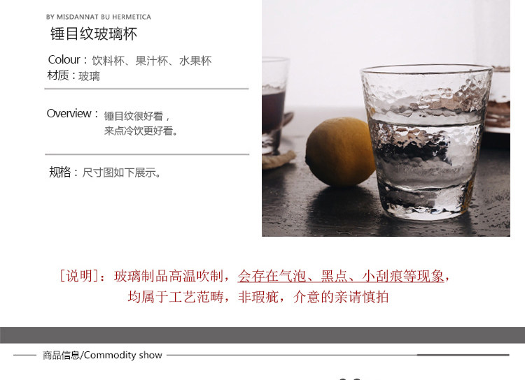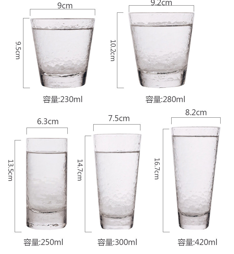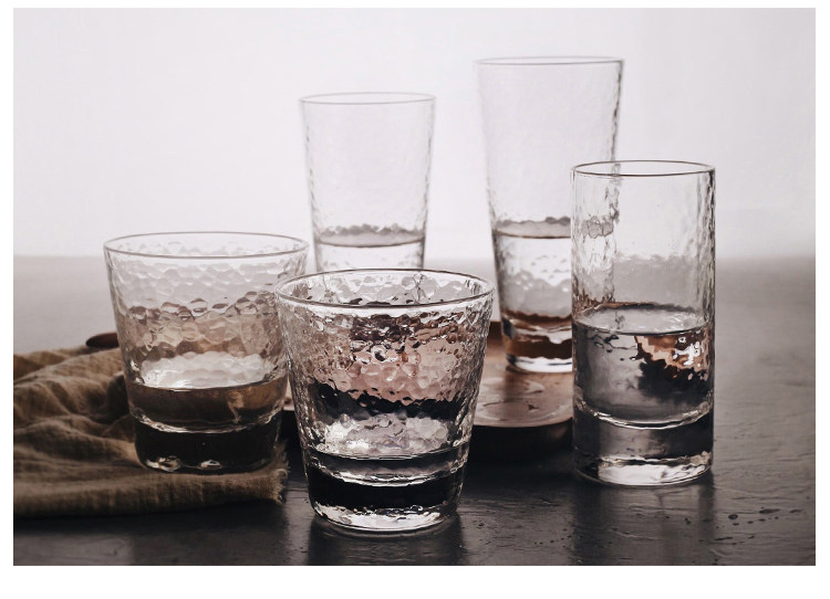 【店家推荐】:锤目纹玻璃杯,立体感很好的一款玻璃杯,很有个性,夏天来了,很是适合冷饮,装上冻饮杯子外壁液化的水珠会让杯子更好看哦。