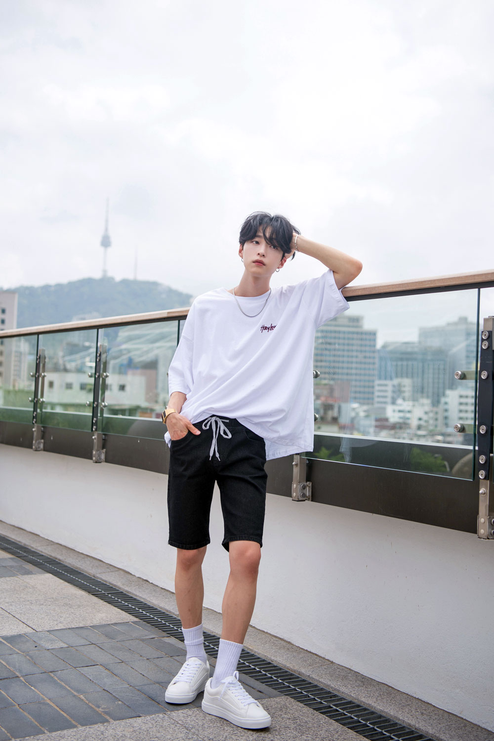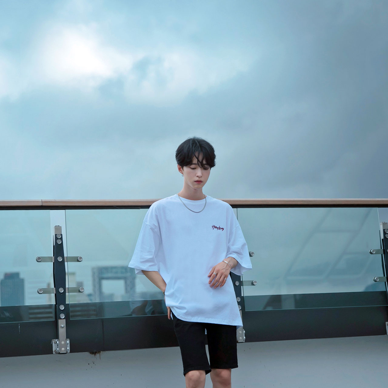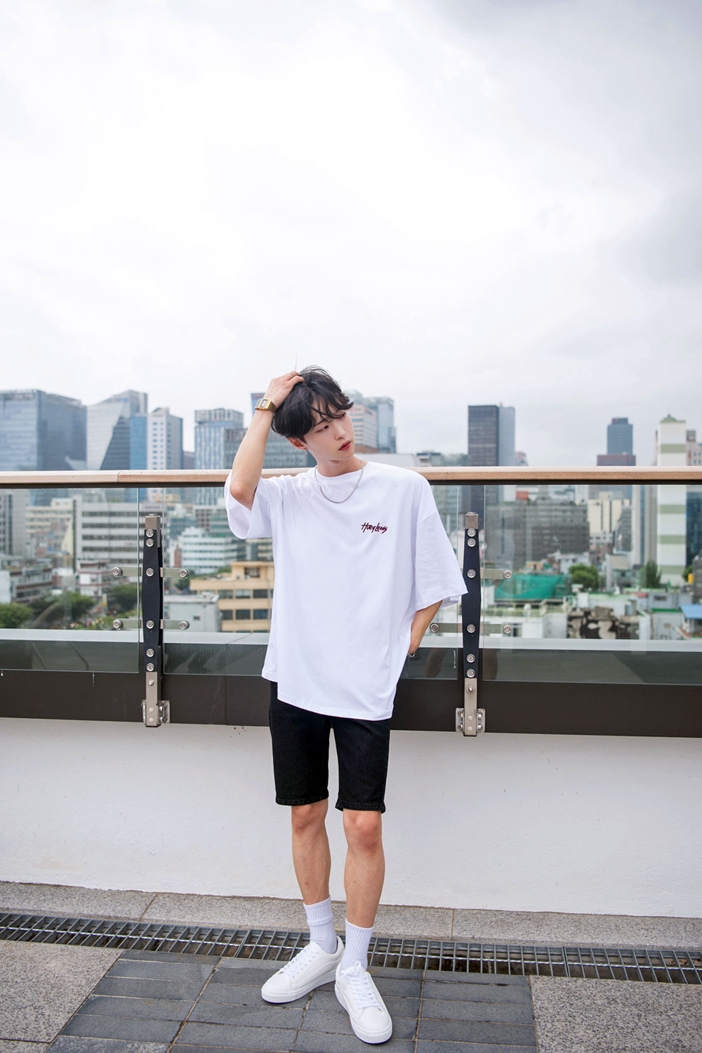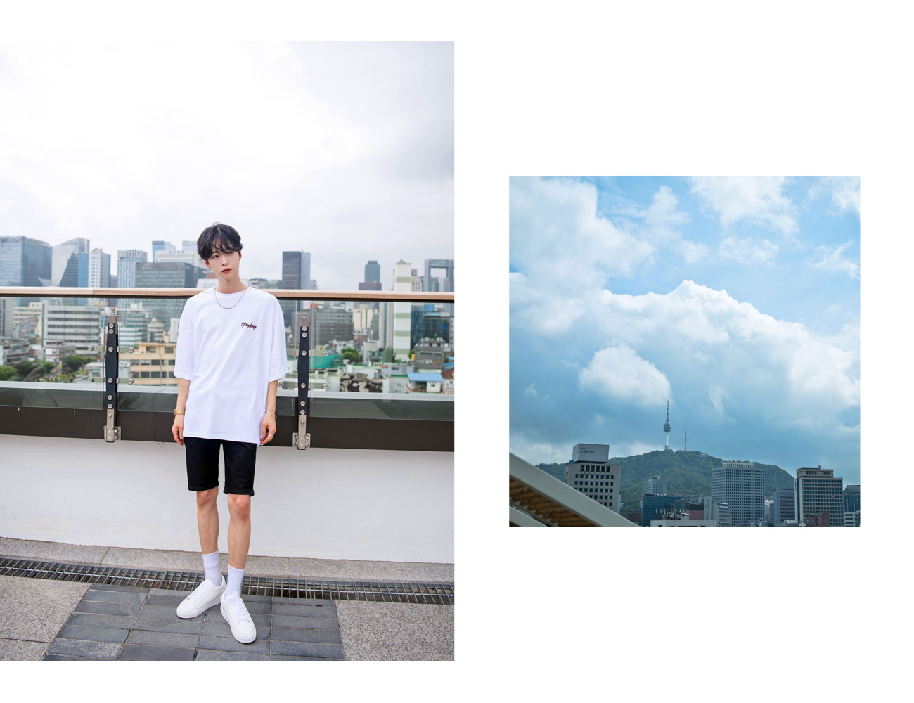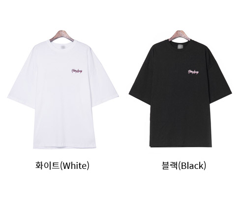 가슴부분에 레터링이 깔끔하게 들어간 오버핏의 반팔티셔츠입니다.