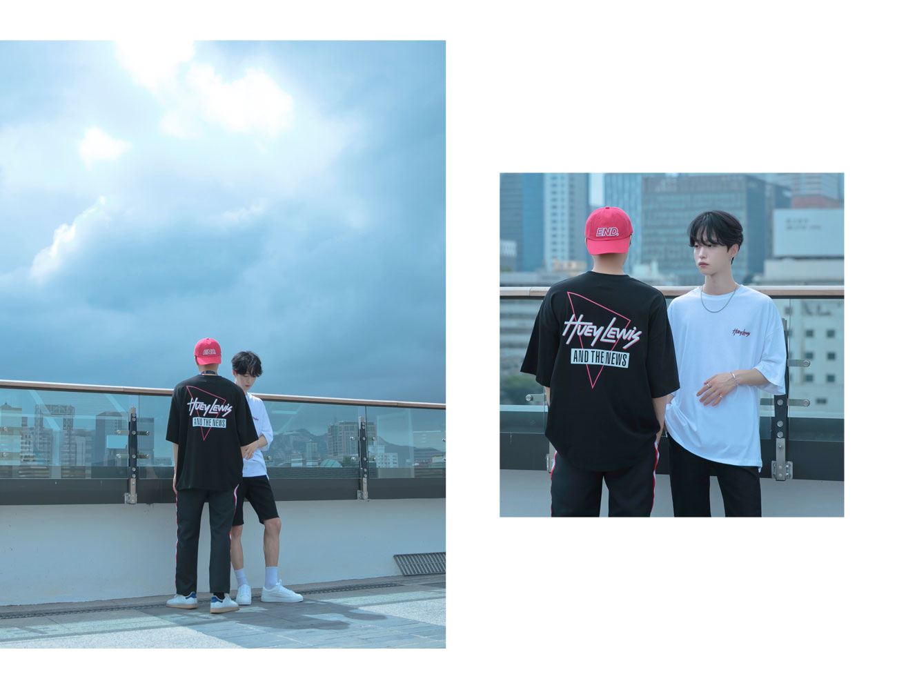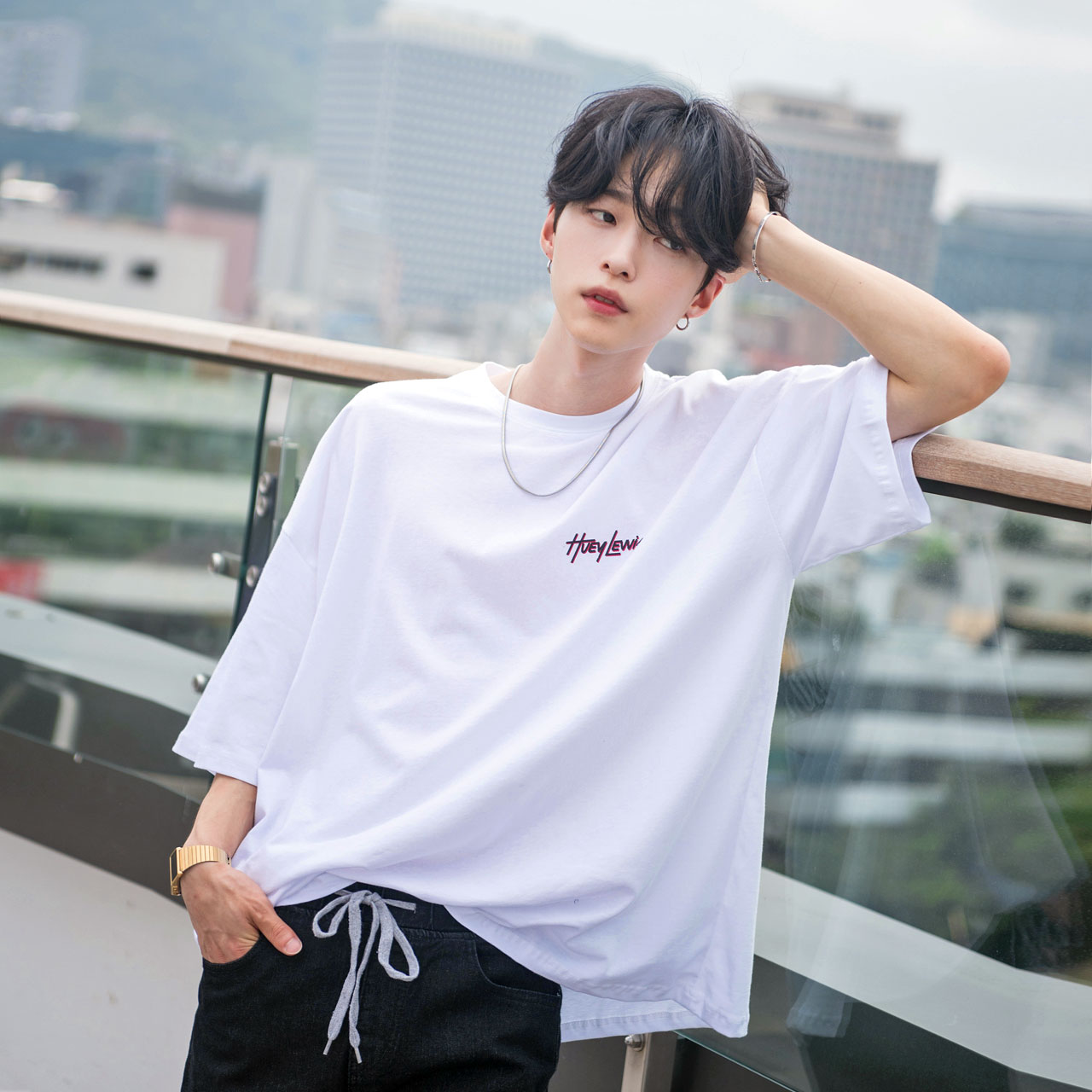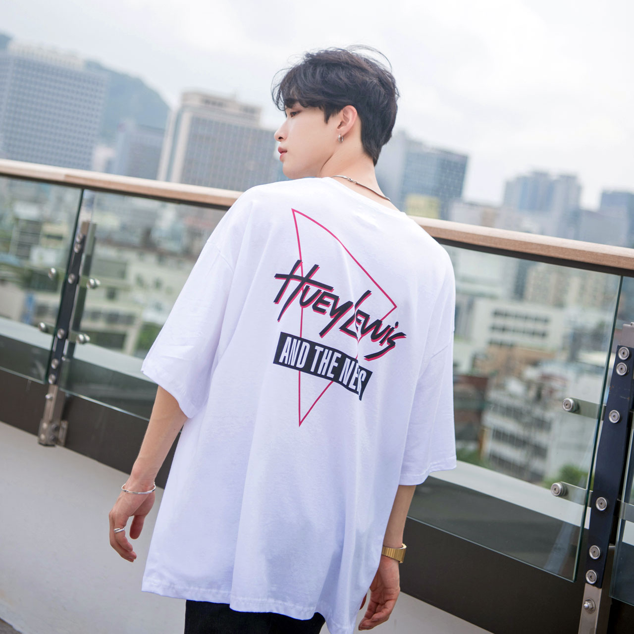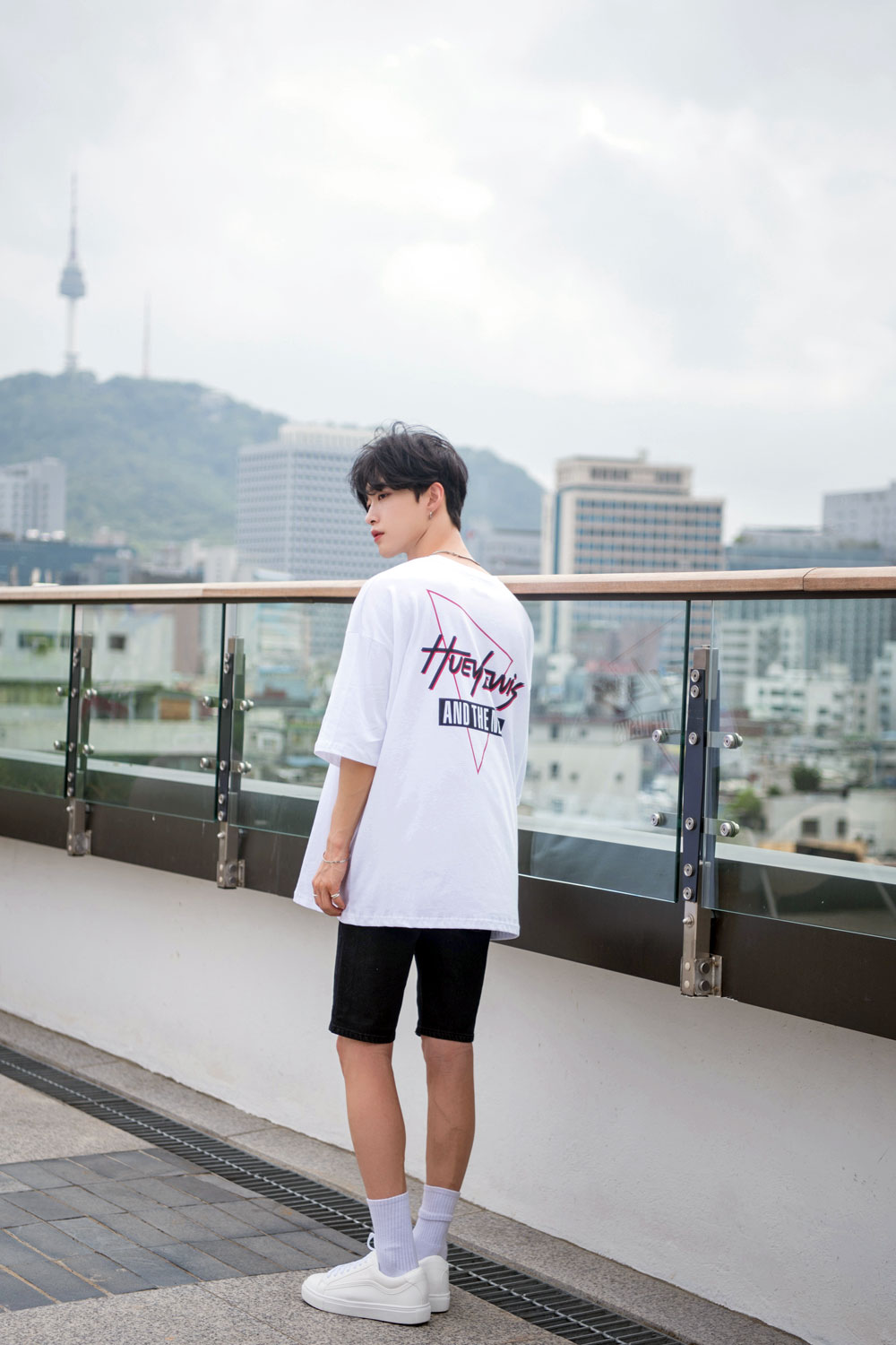 가슴부분에 레터링이 깔끔하게 들어간 오버핏의 반팔티셔츠입니다.