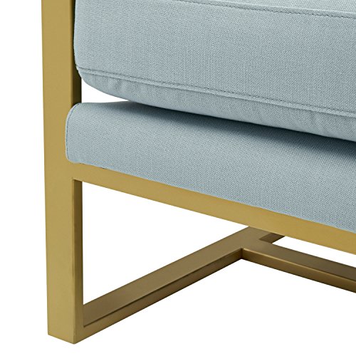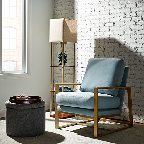 An Amazon brand - Glam meets industrial in this upholstered chair with square metal side pieces serving as arms and legs. Smart design and plush cushions make this a welcome addition anywhere a comfortable accent chair is needed.Feature