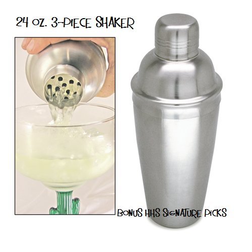 -. Title : Cocktail Shaker 3-Piece, 24 oz. Stainless Steel by Co-rect w/ FDL Party Picks