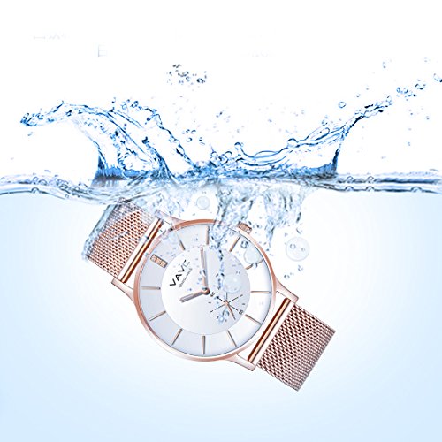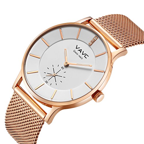 SIMPLE CASUAL DESIGN: Ultra-thin rose gold classic fashion slim watch.crystal mark with the simplicity of business casual.A perfect gift for family or friends.