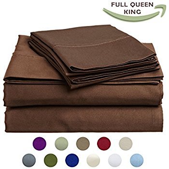 E&A LINEN 1800 Series Bamboo Egyptian Comfort Wrinkle Resistant and Hypoallergenic 4 Piece Bed Sheet Set Deep Pocket - Bamboo Brushed Microfiber Blend Sheets for Ultimate Softness (QUEEN) (CHOCOLATE)