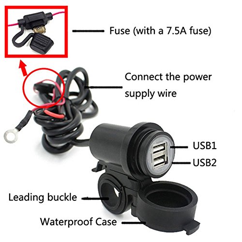 -. Title : BreaDeep Waterproof Motorcycle Motorbike Dual USB Car Charger Power Supply Port Socket 5V / 2.1A for Cellphones GPS MP3
