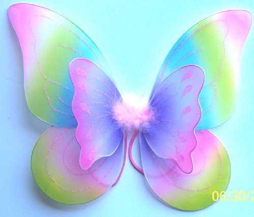 -. Feature : Double layered rainbow wings / 19" X 14" / Comfortable straps on the back fits like a backpack / Comes individually packaged.