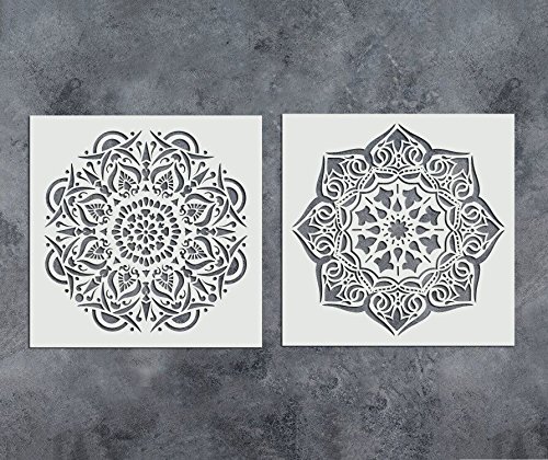 GSS Designs Pack of 2 Mandala Stencils Set (12x12 Inch)Reusable Painting Template for Wood Wall Furniture Floor Tiles Glass Fabric (SL-014)