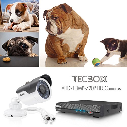 TECBOX k01c6h Security Camera System 4 Channel 720P Ahd Home Video Cctv Surveillance Dvr Recorder, No Hard Drive 4 Hd 1.3Mp Night Vision, Waterproof, Indoor / Outdoor