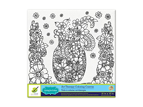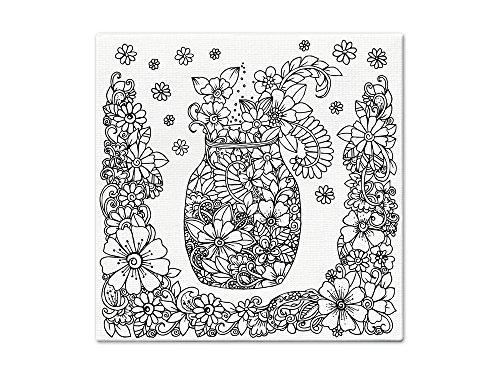 Living in Color Art Therapy Stretch Artist Canvas Primed, 10in x 10in, Color your own beautiful design on Canvas, Mason Jar Floral