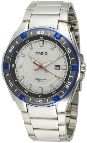-. Feature : Casio Men's MTP1306D-7AV Silver Stainless-Steel Quartz Watch with White Dial