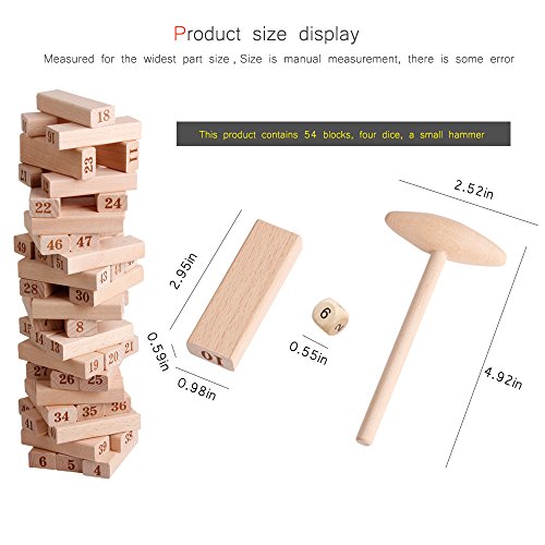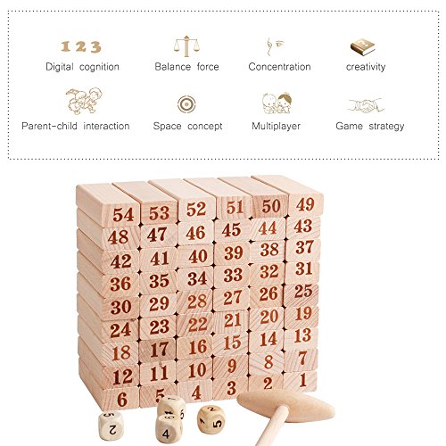 Features: ─All pieces are well crafed and smooth edges, no harms to kids. ─For 1 or more player. Classical family games set. ─Can be played in vary ways: building blocks, stacking games and dominoes. Not only can play jumbling games, but also math games. ─Promotes kids fine motor skills, creativity and practical ability. ─Enhances their interest in learning math. ─Great educational toys for parent-child interaction and birthday gifts. CHOKING HAZARD -- Small parts. Please playing under adults' supervision.Note -- Please notice that this is labeling in Chinese and check the size carefully before purchasing. 0