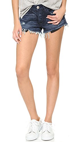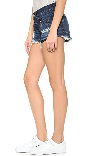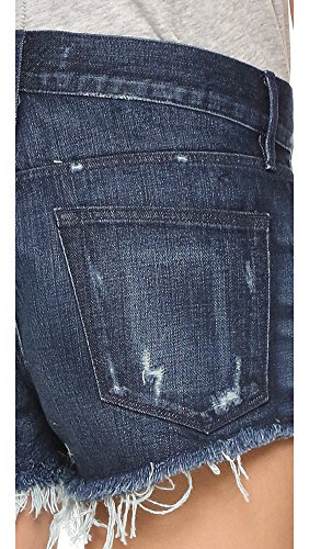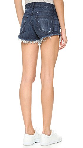 High-waisted 3x1 denim shorts with shredded holes and frayed edges. 5-pocket styling. 4-button fly.